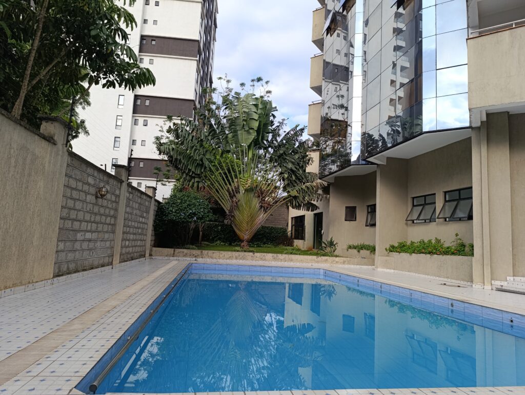 Fully Furnished two bedroom apartment in Kilimani featuring modern interiors, ample natural light, a swimming pool, and a fully equipped gym. Perfect for short-term or long-term stays, with a prime location near shops and restaurants. Enquire now!