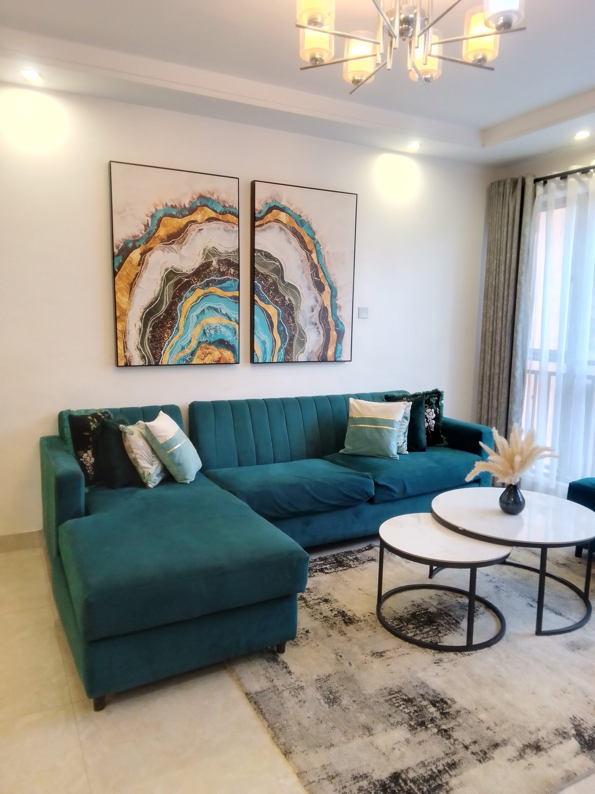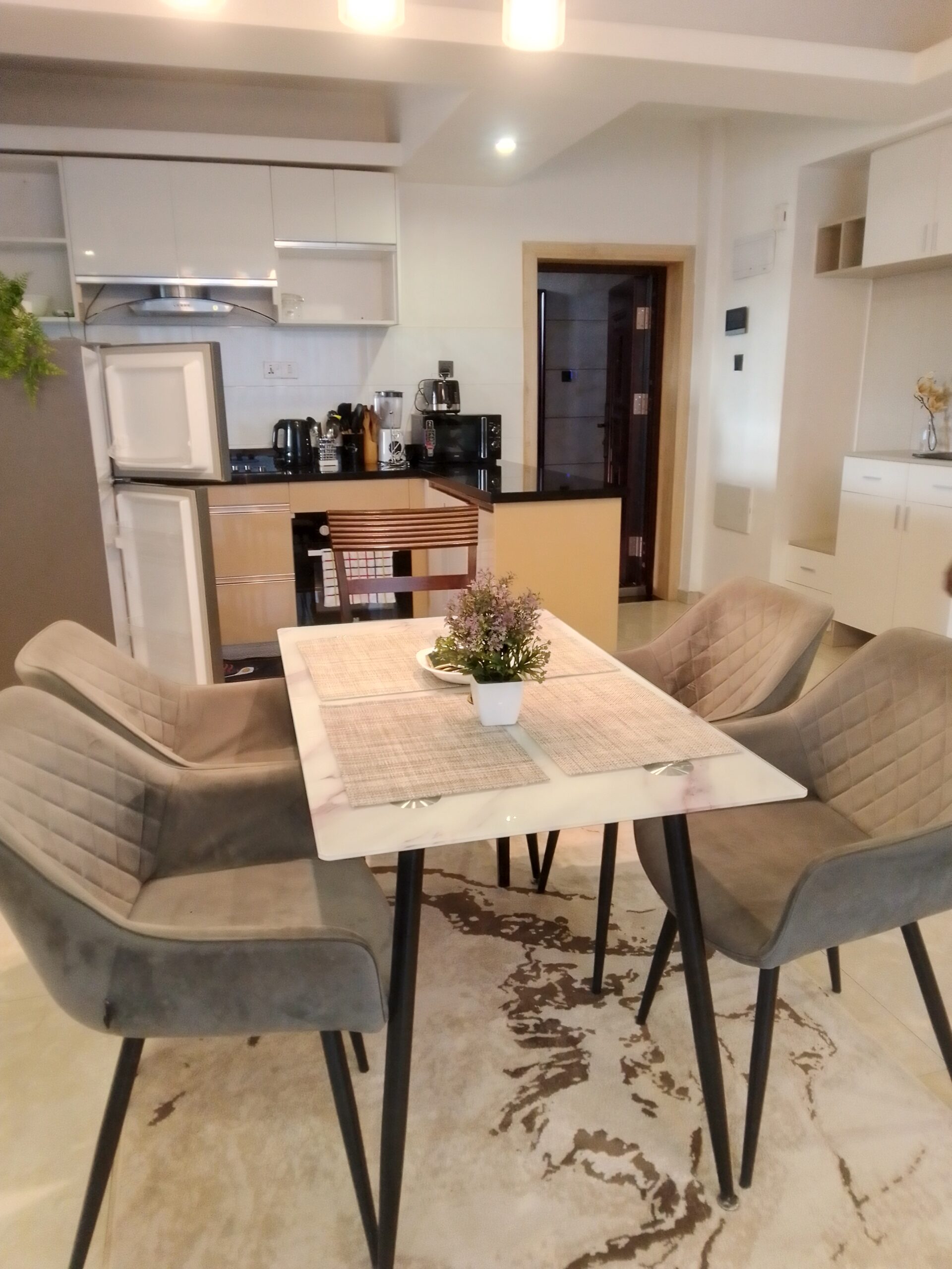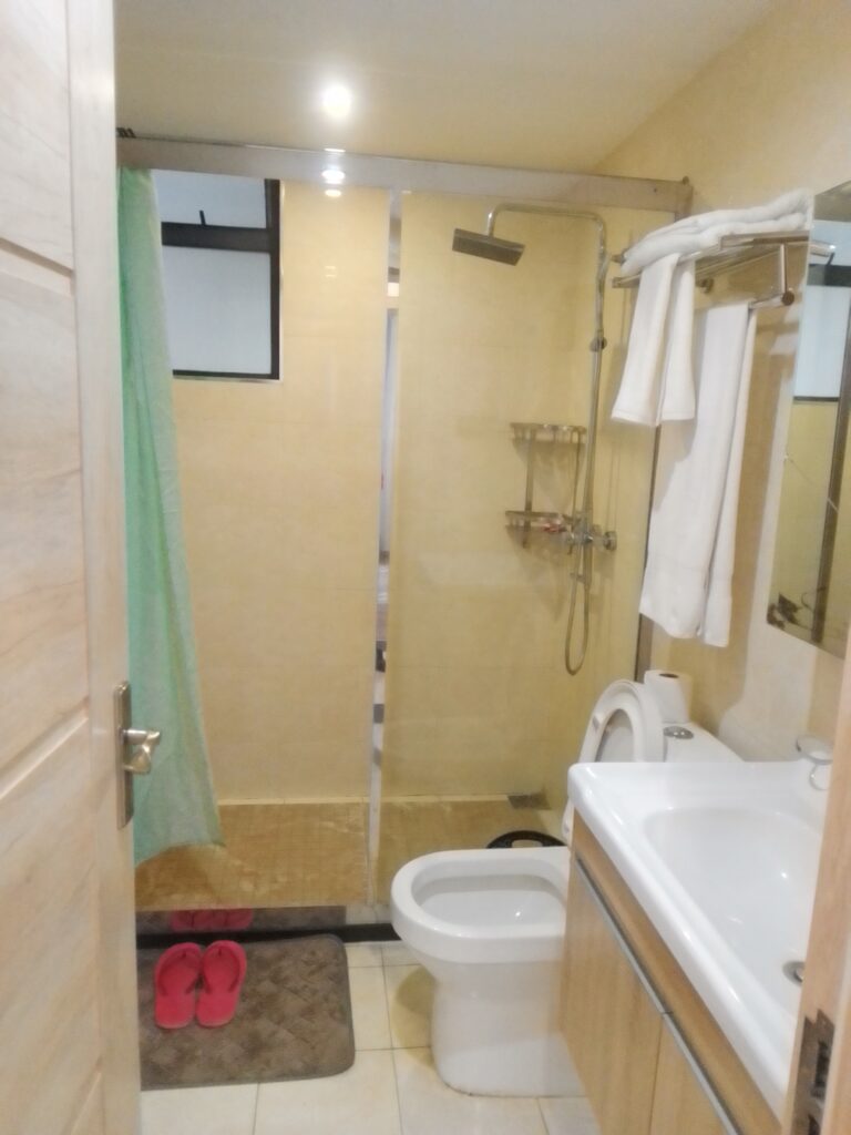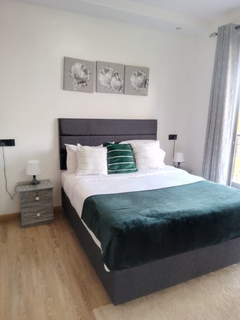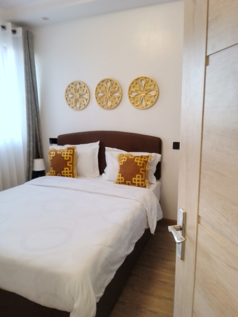 It's a three bedroom Airbnb ,fully furnished ,spacious,with gym and swimming pool amenities,ample parking space ,good security,has three wash rooms , easy access to main roads and supermarket.