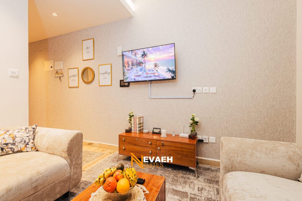 🛋️ Elegant Living Area — a stylish, well-furnished living space designed for relaxation and comfort after a busy day in the city